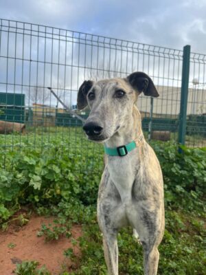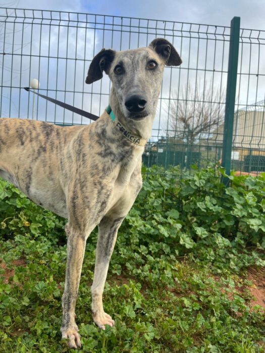 Fenicia stammt aus von einem Jäger aus Extremadura zusammen mit 32 anderen Hunden – Sie waren alle dem Untergang geweiht, aber glücklicherweise konnte FBM den Jäger davon überzeugen alle Galgos abzugeben.